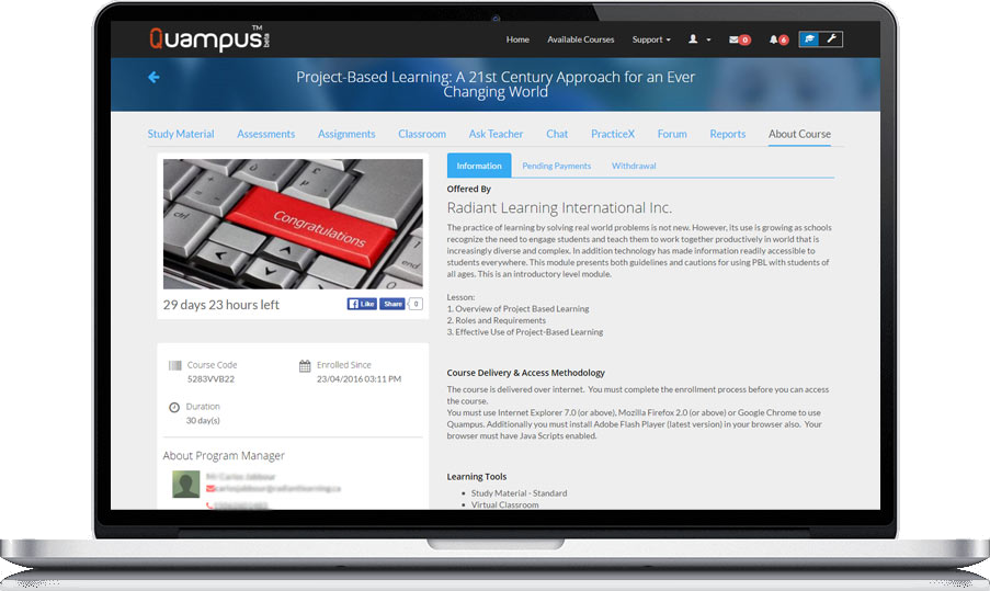 Quampus gives you not only the most powerful Learning Management System (LMS), but also the complete administrative autonomy to manage it the way you want.